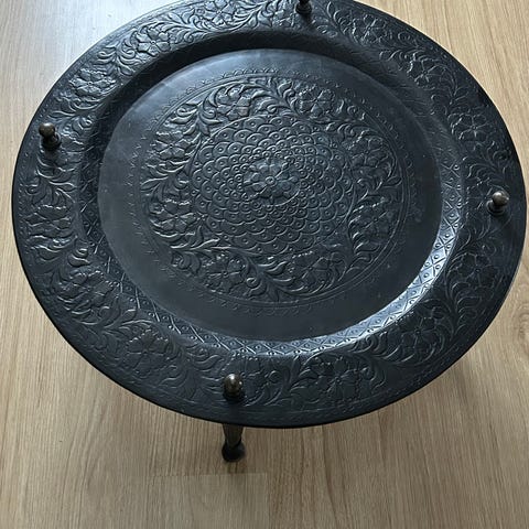 Marmorert plate med fine farger, mørke brune bein.