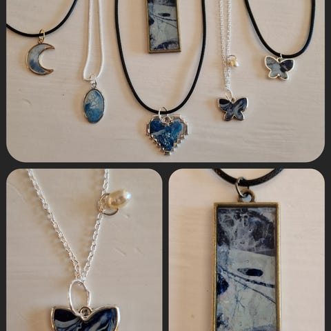 Håndlagde smykker. Ekte blomster i resin.
