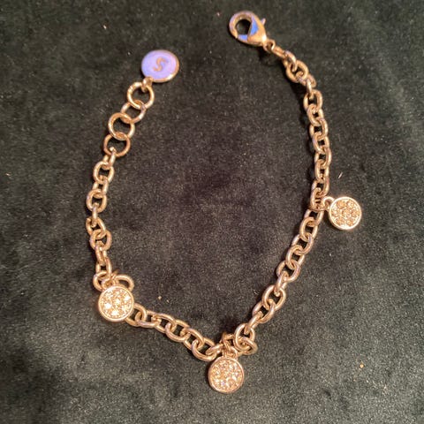 Mørk metall. 5 x "charms". Ca. 22.5 cm. langt.