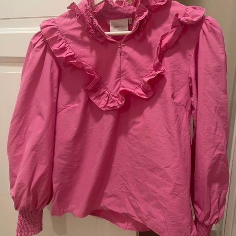 Valentino Red bluse for dame i størrelse M. Blusen er rosa . Modellen har rund hals, korte puffede ermer og glidelåslukking bak. Passer til hverdagsbruk eller mer pyntede anledninger, og kan kombineres med både bukser og skjørt.