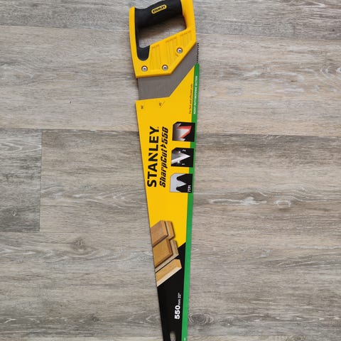 Stanley JetCut håndsag. Håndsagen har tradisjonelt sagblad og håndtak i plast. Egnet for kapping av treverk og lignende materialer i hobby- og byggearbeid. Leveres med beskyttende papphylster rundt bladet slik det vises på bildene. Transport to Oslo Free 95842693 sms