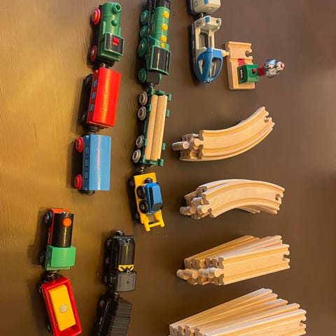 Togbane av tre / sett fra Brio tog tretogbane byggeklosser tretog