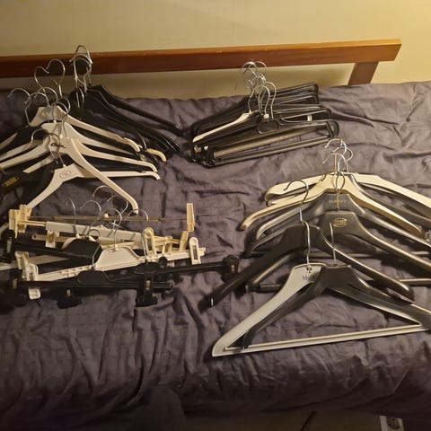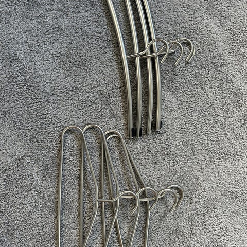 Metall kleshengere i ulike farger. Hengere i tynn metalltråd, egnet til oppheng av klær som skjorter, topper, bukser og lette jakker. Flere farger er inkludert, blant annet kobberfarget, gullfarget og svart. Passer til bruk i garderobe, skap eller på klesstativ.