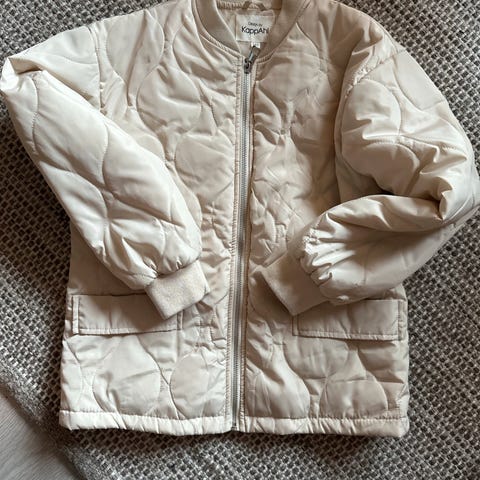KappAhl jakke for jente i størrelse 140. Jakken er svart og laget i polyester, med vattering og glidelåslukking foran. Den har hette med fuskepelskant og belte i livet. Innvendig navnelapp gjør det enkelt å merke plagget. Materiale ifølge vaskelapp: ytterstoff, fôr og vattering i 100 % polyester. Egnet som ytterjakke i kjøligere vær.