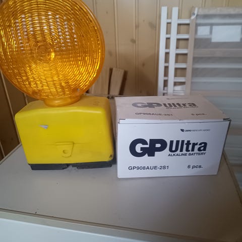 Varsel lykt med led lys, hel og grei, mangler batteri