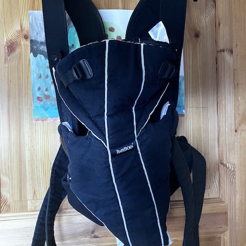 BabyBjörn bæresel e i svart bomull med polstret innside. Hovedmateriale er 60 % bomull og 40 % polyester, med fôr i 100 % bomull. Bæreselen er beregnet for barn fra minimum 3,5 kg og 53 cm, opp til maks 12 kg. Justerbare stropper og spenner gjør at selen kan tilpasses brukeren. Egnet til å bære babyen tett inntil kroppen i hverdagen, både inne og ute. Kan vaskes i maskin, separat, i henhold til vaskeanvisningen på merkelappen.