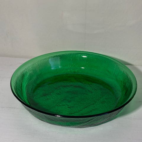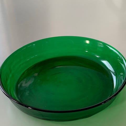 Stort og flott grønt glassfat fra Grønland-serien, designet av Arne Jon Jutrem for Hadeland Glassverk. I god stand uten hakk og nærmest ingen riper i bunnen.