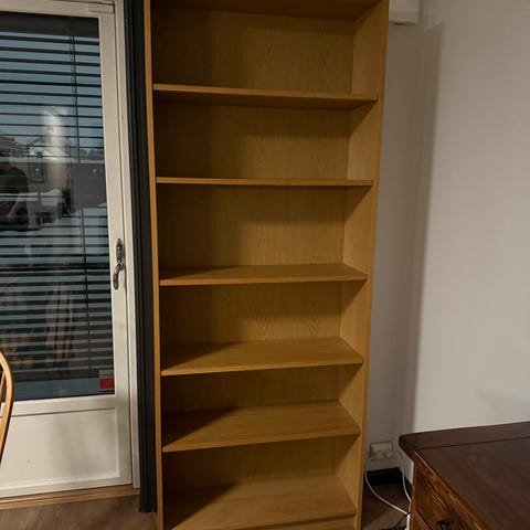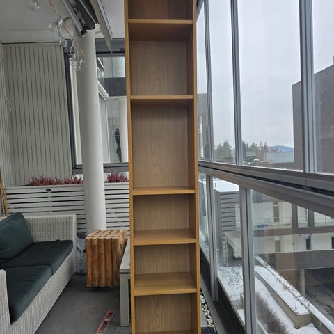 Selve hylla er litt ustabil, og er derfor stabilisert med en planke på baksida. Topplata har noen skruehull.