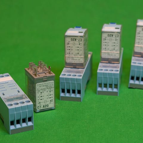 To relèer, Siemens til salgs. 24 Volt styrespenning. 250 kroner pr. stk.