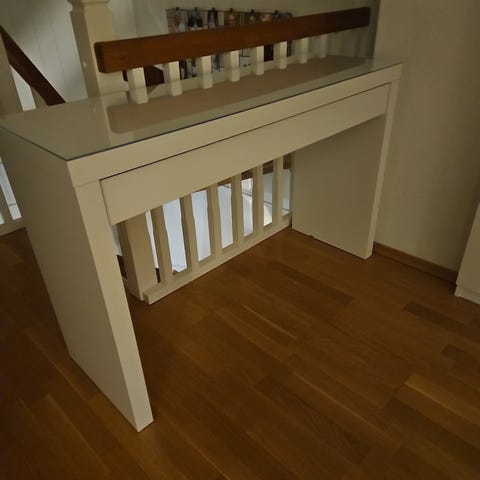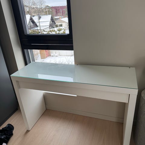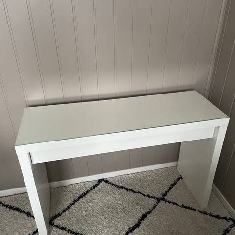 IKEA malm sminkebord med glassplate. Skuffen har blitt litt vrien/treg.