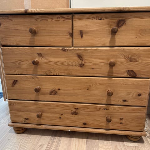 En eldre kommode og ny høy krakk gis bort mot henting.høyde på krakk er 50 cm