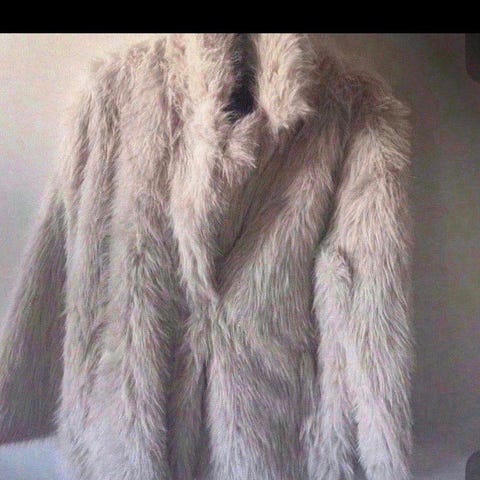 Selger en råkul fuskepels kåpe som kun er brukt en gang.