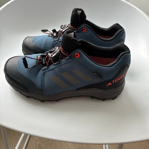 Adidas Terrex Gore-Tex tursko i størrelse 38. Modellen har mellomhøyt skaft og snøring foran. Overdelen er i tekstil og syntetisk materiale i grønn og svart med rosa detaljer. Skoene har Gore-Tex-membran som gjør dem vannavvisende, samt Boost-mellomsåle for demping. continental Yttersåle med grovt mønster gir grep på variert underlag. Egnet til fotturer og annen bruk utendørs.