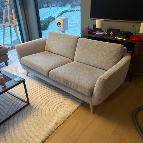 3-seters sofa i en nydelig blå/turkis farge selges da den ikke blir brukt. Stoffet på sofaen er mykt og behagelig, og litt ull-aktig. :-)