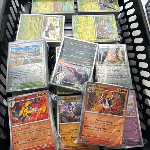 Selger ca 23000 pokemonkort det meste ligg inni orginal pakkene.Pakkene er åpnet allt av holokort er på plass tror eg men har ikke sjekket alle pakkene.Det som er tatt ut av holo følger med i en kasse for seg selv.Følger med over 100 pikashu kort og noen zharisard..Kan byttes i lego eller kjøpes for 12 k eller bud