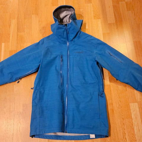 Norrøna Lyngen driflex3 Jacket for dame i størrelse S. Jakken er blå og designet for ski- og toppturer. Driflex3-materialet er vanntett, vindtett, myk og fleksibel. Jakken har lange ventilasjonsglidelåser, håndgamasjer, snøskjørt og stormhette for hjelm.