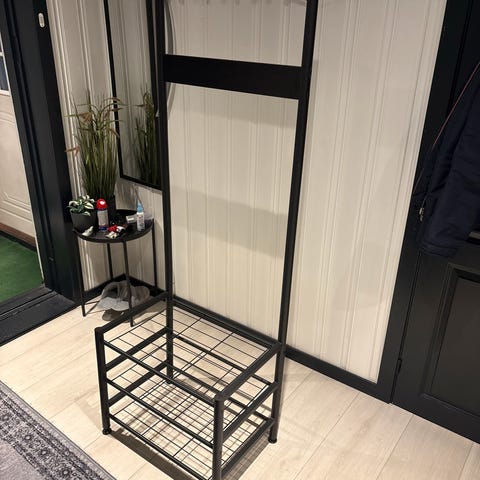 Klesstativ uten hjul, med hylle. Kan demonteres for frakt. Må hentes.