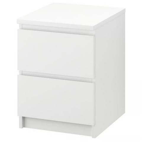 Se bilder for bruksmerker. IKEA nattbord med 2 skuffer i hvit utførelse. Nattbordet har et enkelt, moderne uttrykk med glatte fronter uten håndtak.
