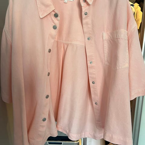 Cathrine Hammel bluse for dame i størrelse L. Blusen er grønn med mønstret trykk og er laget av 100 % bomull. Den har løs passform med trekvartlange ermer og knapp øverst i halsen. Egner seg til hverdagsbruk og kan kombineres med både bukser og skjørt. Fine detaljer på armene, veldig kledelig bluse som passer M og L. Kostet ny 2600 kr