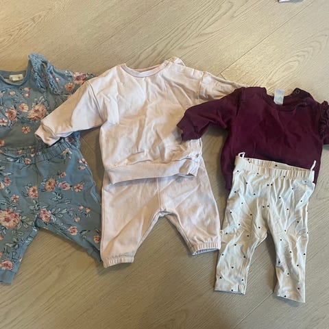 Pakken inneholder pent brukte klær til baby uten merker eller skader.