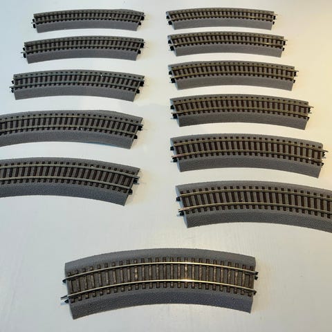 30 stk. Marklin 5100 buede M-skinner. Skinnene er hele og i orden, men lim og malingrester kan forekomme. Kjøper betaler frakt.