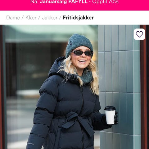 Twentyfour ytterjakke for dame i størrelse S. Jakken er blå og laget i polyester. Modellen er en vattert, knelang jakke med hette og belte i livet. Lukkes med glidelås foran og har horisontale sømmer som gir et quiltet uttrykk. Egnet som yttertøy i kjøligere vær.