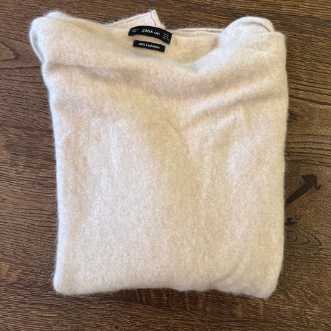 Zara genser i kasjmir for dame. Genseren er i størrelse S og har en lysrosa farge. Modellen har V-hals og lange ermer. Materialet er 100 % kasjmir, som gir et mykt og lett plagg. Passer som en tynn og behagelig genser til hverdagsbruk og pent.