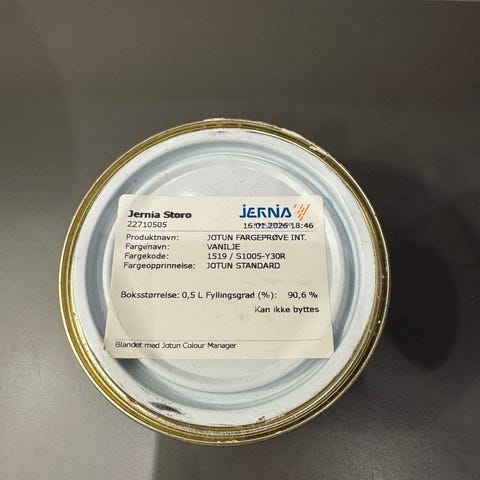 Selger fargeprøve fra Jotun til fargen «Skandinavisk lys».