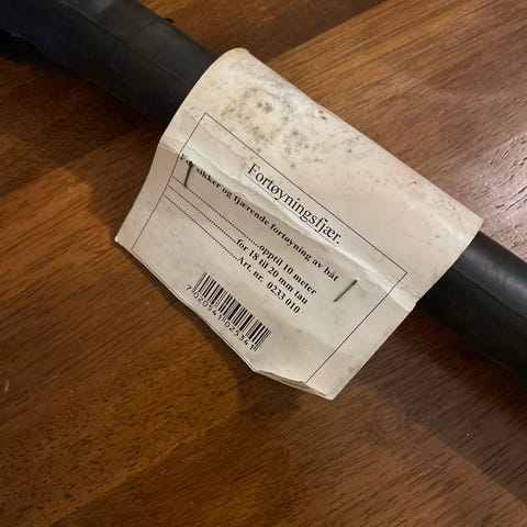 Tau til fortøying av større båter. 45 m langt 15mm. Sterkt og godt tau med eget feste for anker.
