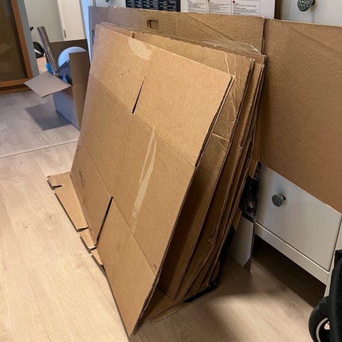 Pappesker i ulike størrelser. Egnet til pakking, flytting eller oppbevaring. Flere typer og fasonger, hovedsakelig brune esker av bølgepapp. Kan brukes som flytteesker, lagringsesker eller til sending av varer, avhengig av størrelse og behov.