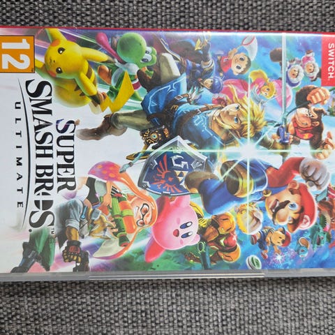 Nintendo Super Smash Bros. Ultimate spill til Nintendo Switch. Action- og kampspill der kjente Nintendo-figurer møtes i ulike arenaer. Spillet er aldersmerket 12 år. Leveres i fysisk utgave for bruk med Nintendo Switch-konsoll.