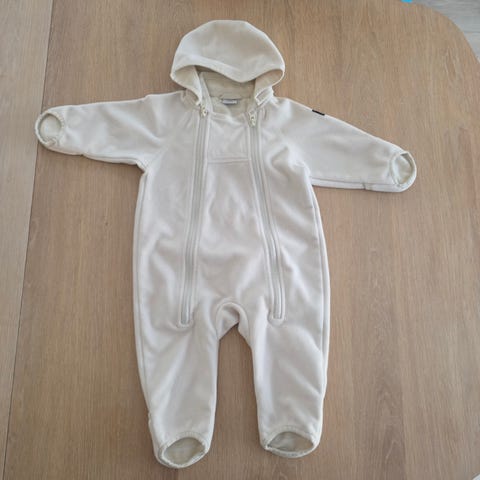 Deilig og søt fleecedress fra Polarn O Pyret. Pent brukt, hel og pen. Med trylleføtter og tryllehender, holder barnet varmt og lunt. Bomull på innsiden.