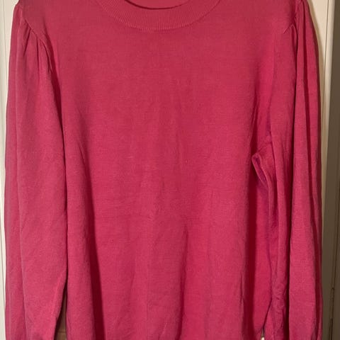 Genseren er laget av 100 % ull og har en rosa farge. Den har lange ermer og volangdetaljer i halsen og ved ermekantene. Passformen er klassisk med ribbekant nederst.