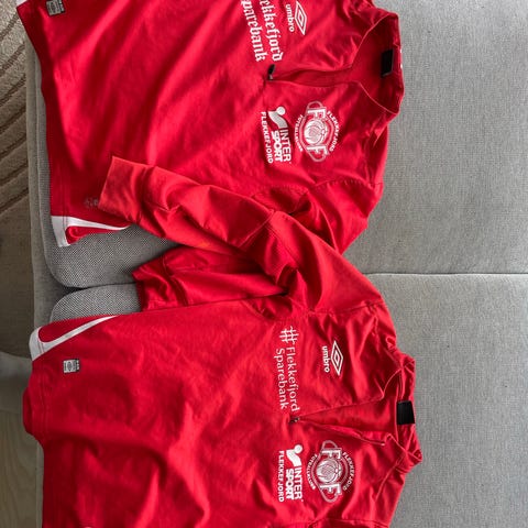 Umbro fotballklær for menn i størrelse M. Settet inkluderer flere plagg i rødt, egnet for dfotballaktiviteter