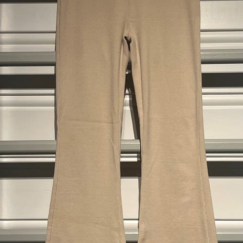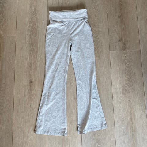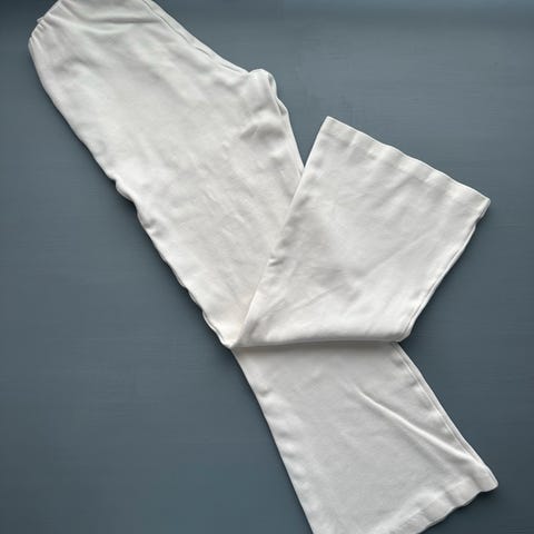 Hvit tights med utsvingte bein og nedbrettbar midje.