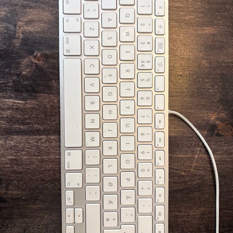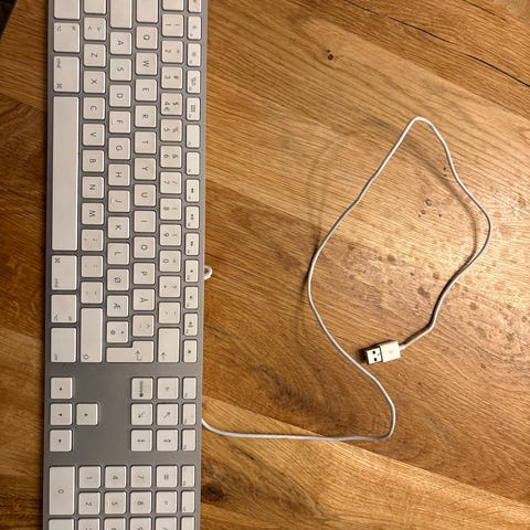 Apple kablet tastatur med numerisk tastatur i hvit og sølv.