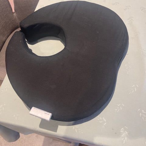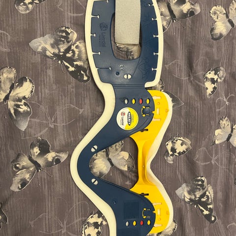 Oppblåsbar halskrage i størrelse S-M. Kragen har rund form med åpning i midten og justerbar rem. Den blå overflaten er i et glatt, lettstelt materiale. Egnet som støtte rundt halsen, for eksempel etter operasjon eller skade hos dyr der slik støtte er anbefalt. Kan tømmes for luft ved lagring for å ta mindre plass.