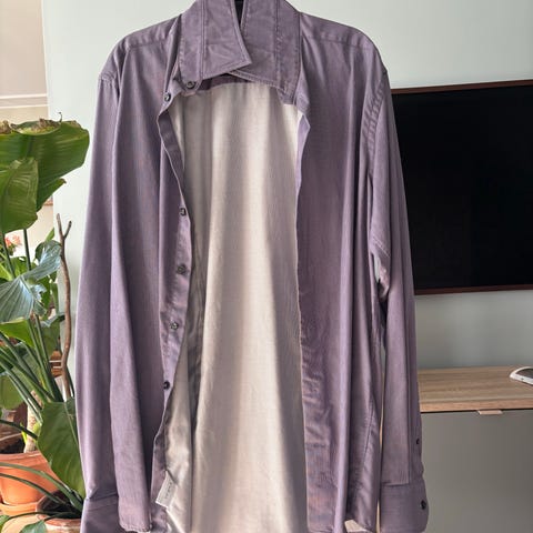 Eton skjorte for herre i størrelse L. Skjorten er hvit og laget av bomull. Klassisk modell med lange ermer, krage og knappelukking foran. Passer til både formelle og uformelle anledninger, og kan brukes med dress, chinos eller jeans.