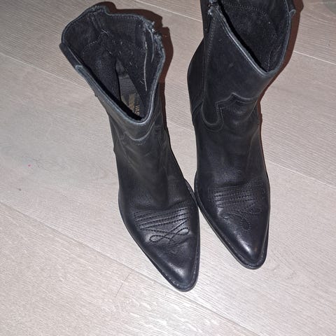 Skinnboots i god stand. Har fått en bøy på hælen etter lagring. Står og vider seg ut nå. Foten på bildet bruker 38,5