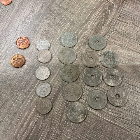 2stk 5ører i aluminium 1941. 1962. 1965.1972..2øre 1951.10øre 1951.2stk 25øre 1990.91.2stk1967.1stk 1966.2kr 1993 .80kr eller bud