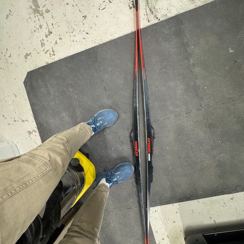 Fischer RCS Skate ski i gul og svart farge. Skiene er konstruert for skøyting og har et lett og stabilt spenn tilpasset denne teknikken. Overflaten har slitesterk struktur, og designet er rettet mot bruk i preparerte løyper. Passer til langrenn med skøytestil. Bindingssystemet på bildet er Rottefella, tilpasset skøyteski.