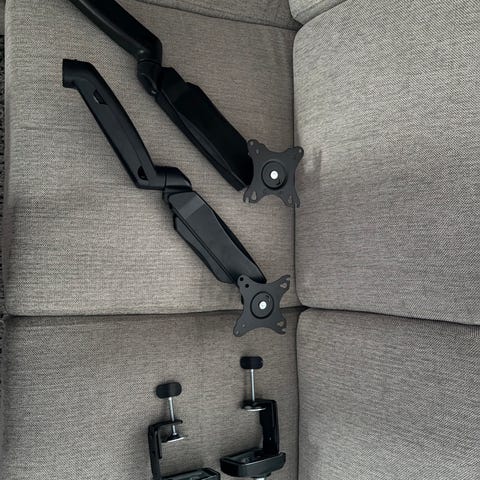 Dobbel skjermarm til skrivebord med VESA-feste. Opp til 32" skjerm.