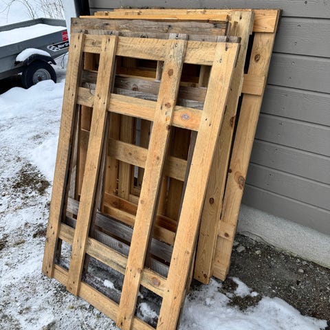 Ukjent merke blandet trevirke panelbord og lekter i furu. Bildene viser en blanding av panelbord og smalere lekter i ubehandlet og beiset/impregnert treverk. Egnet som restmateriale til enkle byggeprosjekter, reparasjoner, forskaling, ved eller andre formål der gjenbruk av trevirke er aktuelt. Dimensjoner og mengde varierer, se bilder for inntrykk av type og lengder på materialene.