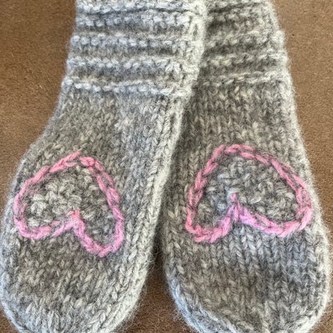 Tova votter til barn. Ca str 3-5 år . Hjertevotten 💙🩵Beigemelert farge! Kr 175,- pr par