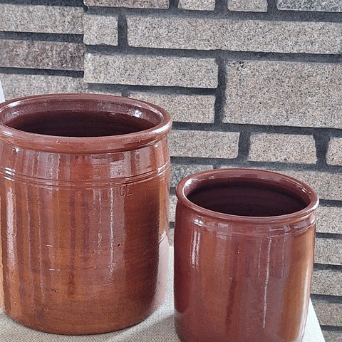 Pent brukte krukker. Vintage/ gamle samlerobjekter. Står linz/ eksport på undersiden..