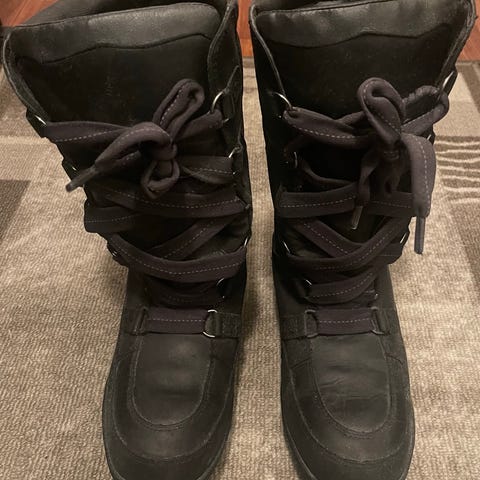 Timberland vinterstøvler i størrelse 36. Støvlene har svart overdel med tekstil og syntetisk materiale, samt kraftig yttersåle med grovt mønster. Snøring foran for justering av passform. Egnet som varme og robuste sko til bruk i kaldt vær og på glatt underlag. Pris 50 nok