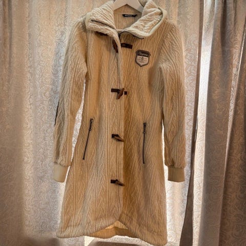 Cardigan er helt ny, lappen er dessverre borte. Har liggende cardigan med andre farger og bruker kun den andre siden jeg har matchende sko (blå).