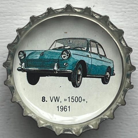 - Bilnummer: Hver kork har et bilmotiv med et unikt nummer, f.eks. “7. Porsche 1600 Super 1961”