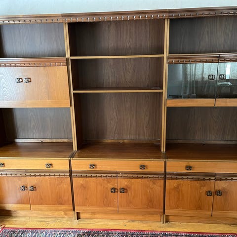 Pent brukte BBB-reoler. Heltre furu.