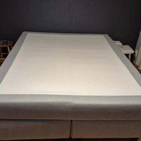 Overmadrass ca. 3 cm tykk med polyeterskumkjerne og vaskbart trekk.